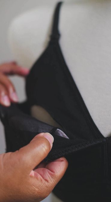 All of Thea Renee nursing bras have a unique design feature (patent pending) to securely hold nursing pads in the bra’s breast cup. I call it the "pocket". This prevents breastmilk from leaking onto your skin and through your clothes.